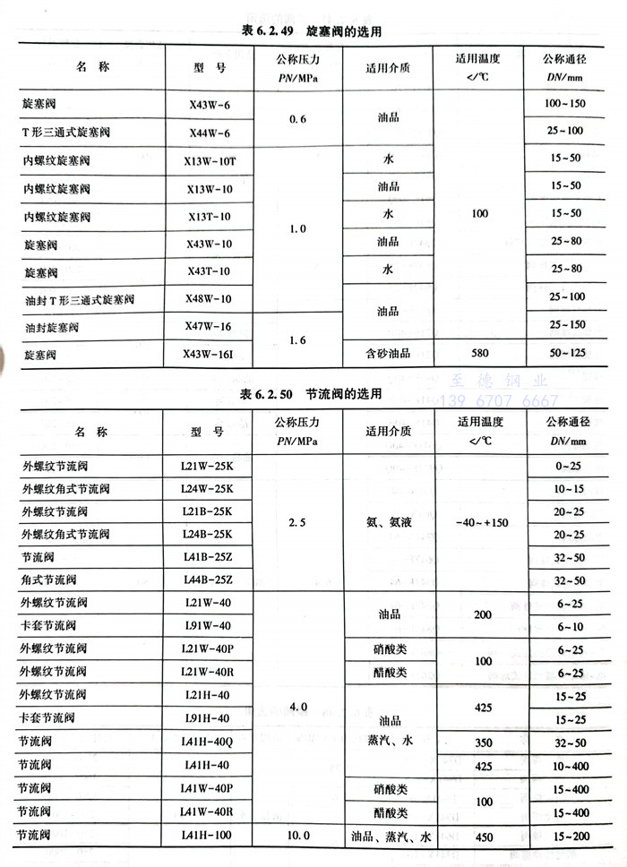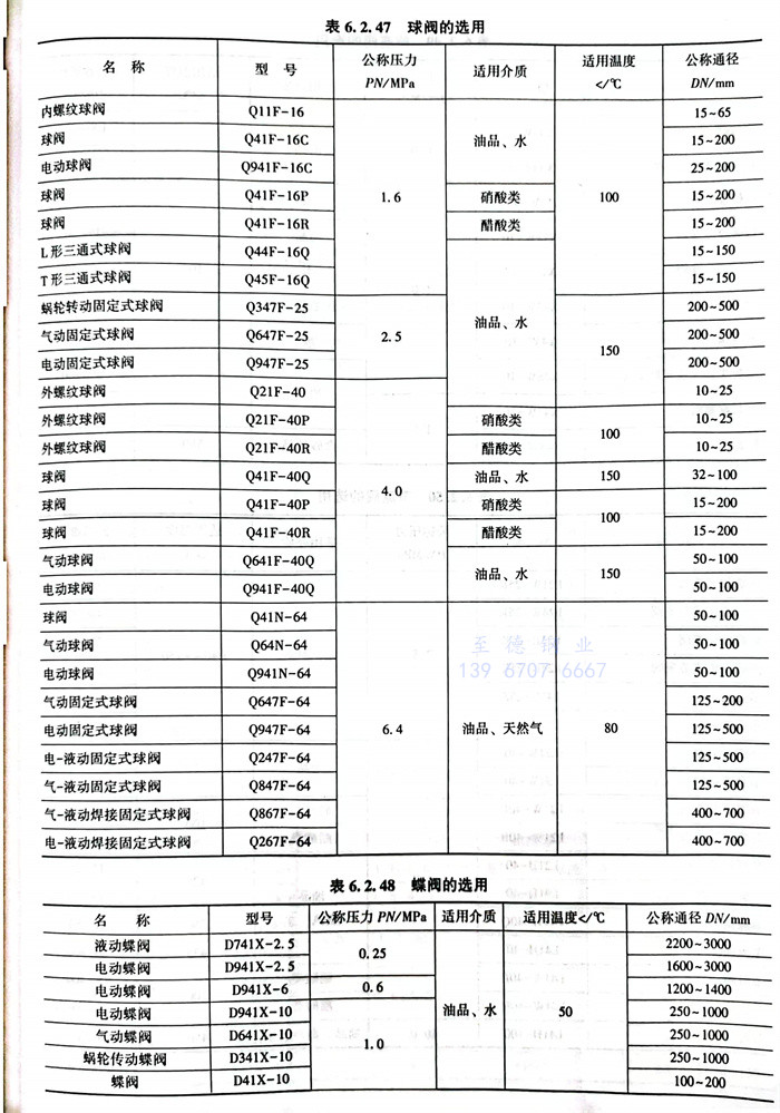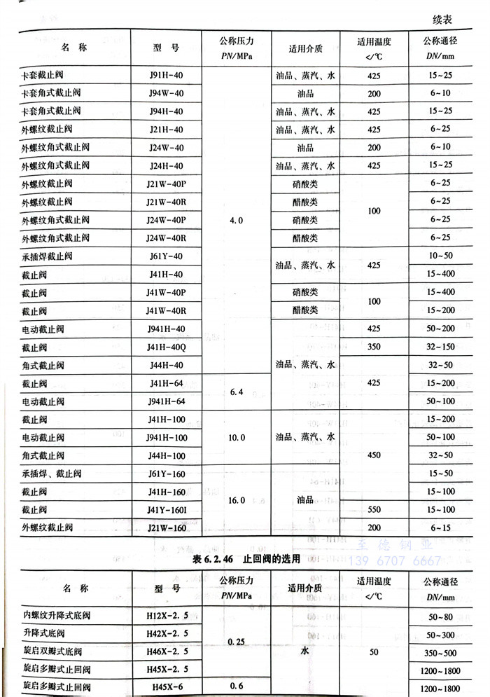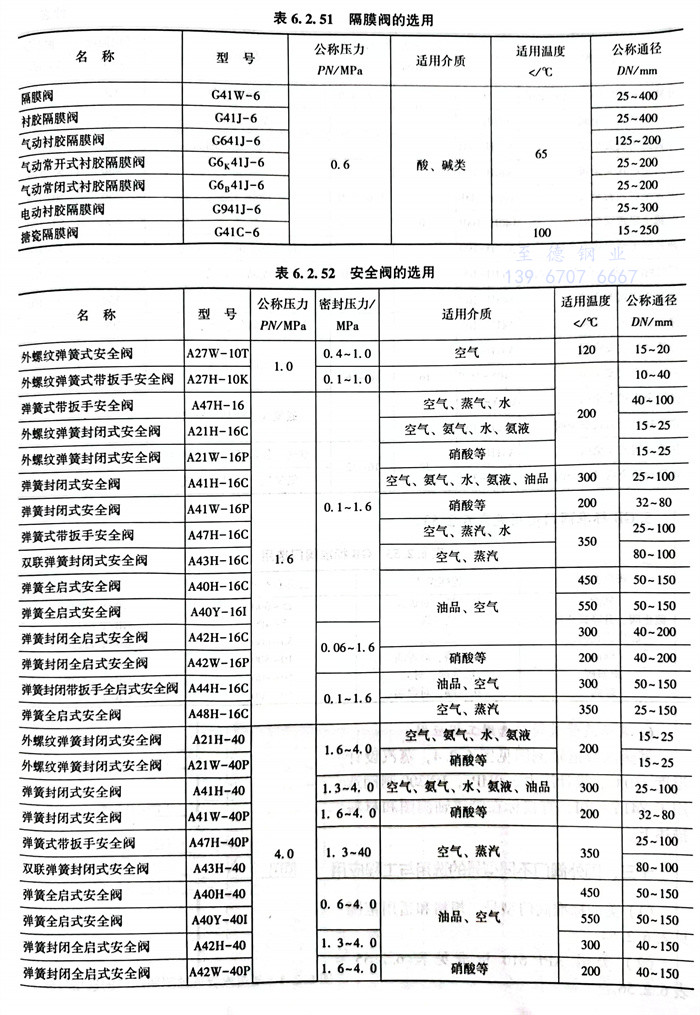 4. 閘閥(fa)(fa)、截止(zhi)閥(fa)(fa)、止(zhi)回閥(fa)(fa)、球閥(fa)(fa)、蝶閥(fa)(fa)、旋塞閥(fa)(fa)、節流閥(fa)(fa)、隔膜閥(fa)(fa)、安全閥(fa)(fa)的(de)選用,見表6.2.44~表6.2.52。