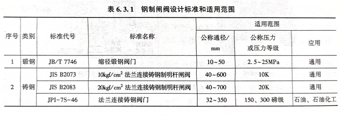 1. 鋼制閘閥設(she)計標準和適(shi)用范圍,見(jian)表6.3.1。
