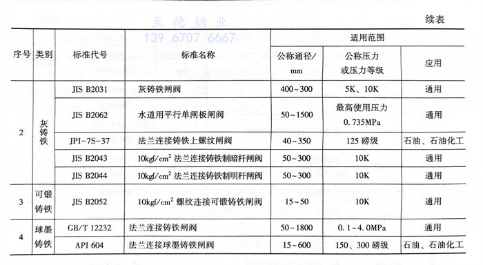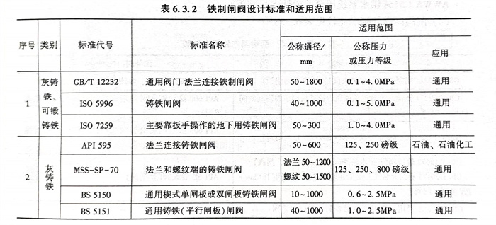 2. 鐵制閘閥設計標準(zhun)和(he)適用范圍,見表(biao)6.3.2。