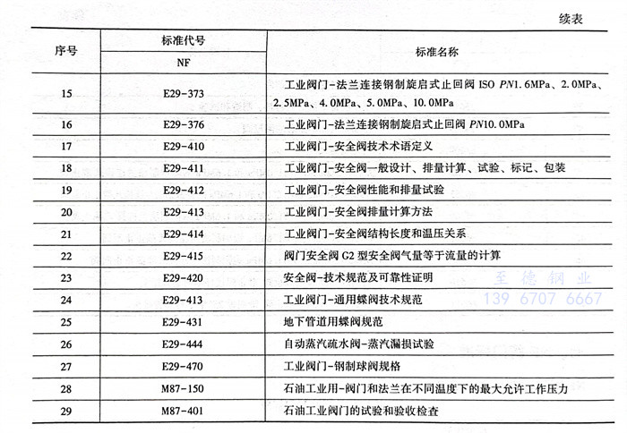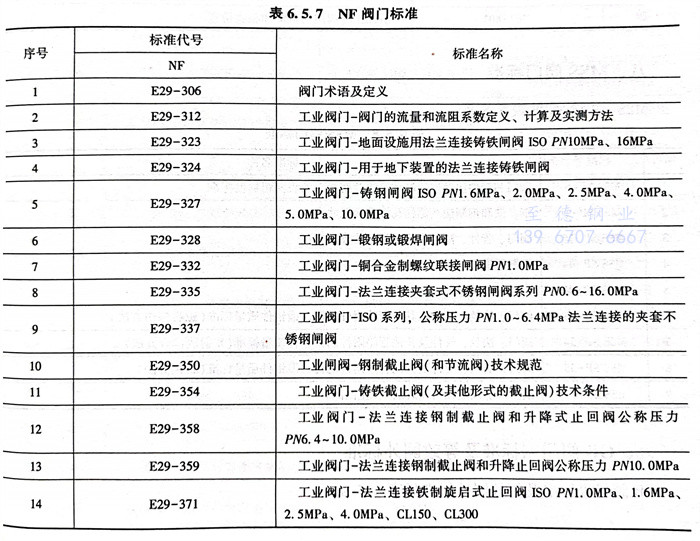法國 NF 閥門標(biao)準(zhun)見(jian)表6.5.7。