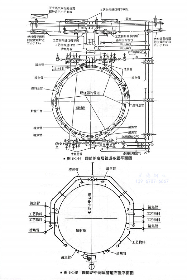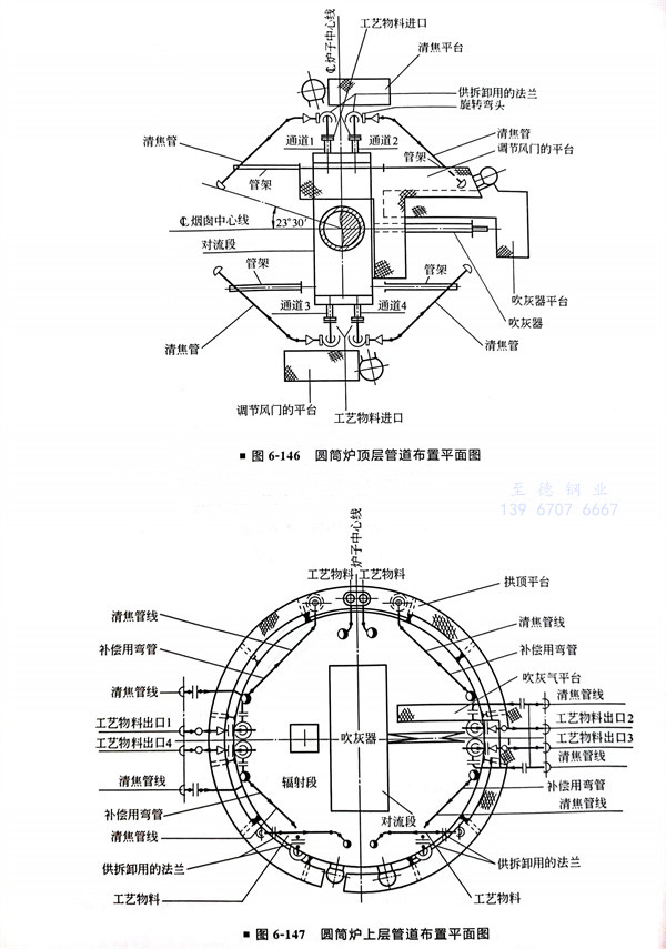 圓筒爐的管道布置實例(圖6-144~圖6-150)