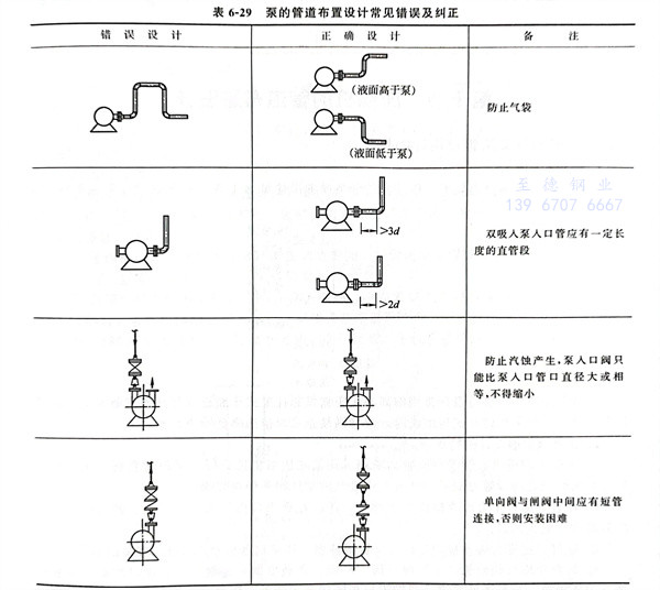 泵的管(guan)道布置設計(ji)常見(jian)錯誤及糾(jiu)正見(jian)表6-29。