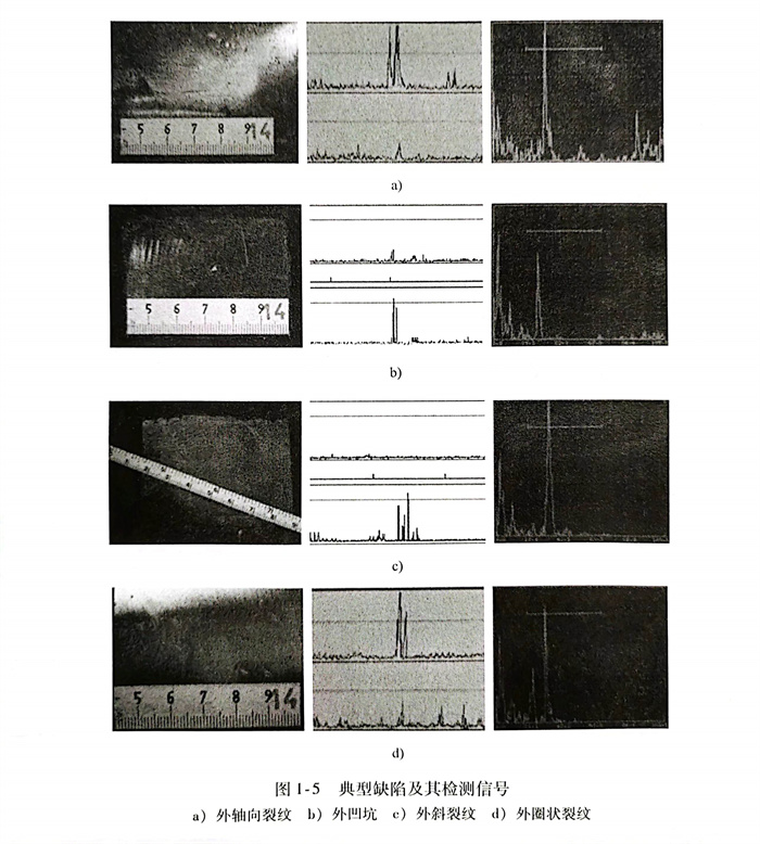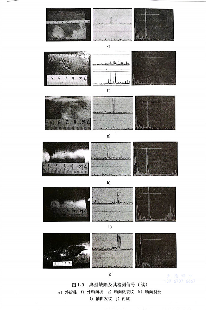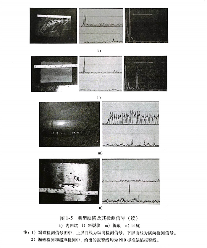 為(wei)直(zhi)觀體現,圖1-5給出了不銹鋼管檢測(ce)過程(cheng)中出現過的(de)多種(zhong)缺(que)陷(裂(lie)紋(wen)、缺(que)失)以(yi)及相應的(de)漏磁檢測(ce)信號(hao)和(he)超聲檢測(ce)信號(hao),從中能夠了解(jie)自然缺(que)陷的(de)多樣性和(he)不同檢測(ce)方法的(de)敏(min)感差異(yi)。