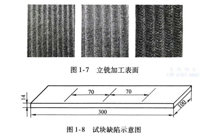 采用(yong)(yong)(yong)Q235碳(tan)素結構鋼制作試(shi)(shi)塊(kuai),試(shi)(shi)塊(kuai)尺寸長300mm、寬(kuan)100mm、厚14mm。首先,將(jiang)三塊(kuai)試(shi)(shi)塊(kuai)表面(mian)(mian)利用(yong)(yong)(yong)飛刀進(jin)行(xing)銑(xian)削加工,如圖(tu)1-6所(suo)(suo)示(shi),其表面(mian)(mian)粗糙度值(zhi)從(cong)左(zuo)到(dao)右依次(ci)(ci)為(wei)Ra3.2μm、Ra6.3μm、Ra12.5μm,編號1、2、3。然(ran)后(hou),利用(yong)(yong)(yong)立(li)銑(xian)加工另外(wai)三塊(kuai)試(shi)(shi)塊(kuai)表面(mian)(mian),如圖(tu)1-7所(suo)(suo)示(shi),其表面(mian)(mian)粗糙度值(zhi)從(cong)左(zuo)到(dao)右依次(ci)(ci)為(wei) Ra3.2μm、Ra6.3μm、Ra12.5μm,編號4、5、6。另外(wai),再采用(yong)(yong)(yong)平磨加工一塊(kuai)試(shi)(shi)塊(kuai)表面(mian)(mian),此種(zhong)方式獲得(de)的(de)表面(mian)(mian)質量較好,其表面(mian)(mian)粗糙度值(zhi)為(wei)Ra0.2μm,編號7。所(suo)(suo)有(you)試(shi)(shi)塊(kuai)表面(mian)(mian)均刻有(you)一組寬(kuan)度為(wei)20μm,深度不同的(de)人工線狀缺陷,尺寸如圖(tu)1-8所(suo)(suo)示(shi),從(cong)左(zuo)到(dao)右深度依次(ci)(ci)為(wei)20μm、45μm、70μm,相鄰缺陷的(de)間距為(wei)70mm。