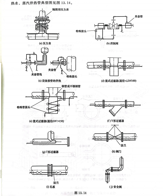 熱水(shui)、蒸汽伴熱管典型(xing)圖見圖13.14。