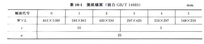 圖(tu)(tu)紙幅面(圖(tu)(tu)10-1、表(biao)10-1):按國家(jia)標準(zhun)(單位:mm)為A0(841×1189)、A1(594×841)、A2(420×594)、A3(297×420)、A4(210×297)A5(148×210)。