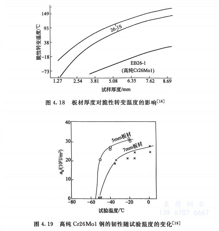 力學性能見圖4.17和(he)表4.8。脆(cui)性轉變(bian)溫度見圖4.18和(he)圖4.19。一(yi)般認(ren)為高純Cr26Mo1截面尺寸適用于(yu)≤6mm或≤7mm板(ban)、帶材(cai)、管材(cai)。