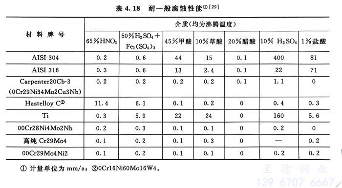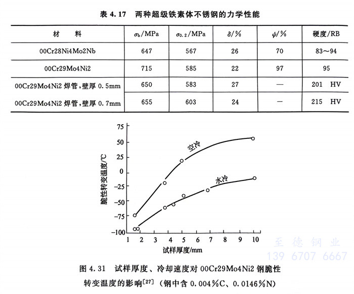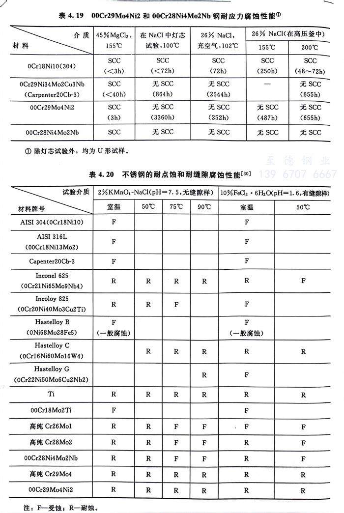 00Cr29Mo4Ni2和00Cr28Ni4Mo2Nb兩種超級鐵素(su)體不銹鋼耐全面腐蝕、耐點蝕和縫隙腐蝕以及耐應力腐蝕的性能見表4.18~表4.20和圖4.33。