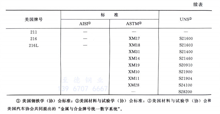 以錳、氮代鎳的(AISI 200系)鉻錳奧氏體不銹鋼(gang),美國AISI標準中僅有三個牌號,即AISI 201,202和205,但ASTM和UNS中則列入了更多的牌號,見表5.20。為了節鎳,AISI 201和202所對應著代替鉻鎳奧氏體不銹鋼的牌號是 AISI 301和302。