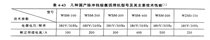 有關(guan)脈(mo)沖鎢極氬(ya)弧焊機的型(xing)號很多,表4-43列(lie)出了(le)國內幾種脈(mo)沖鎢極氬(ya)弧焊機型(xing)號及其主(zhu)要技術性能,可供選用。