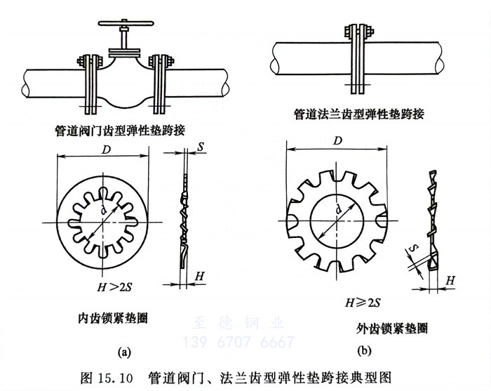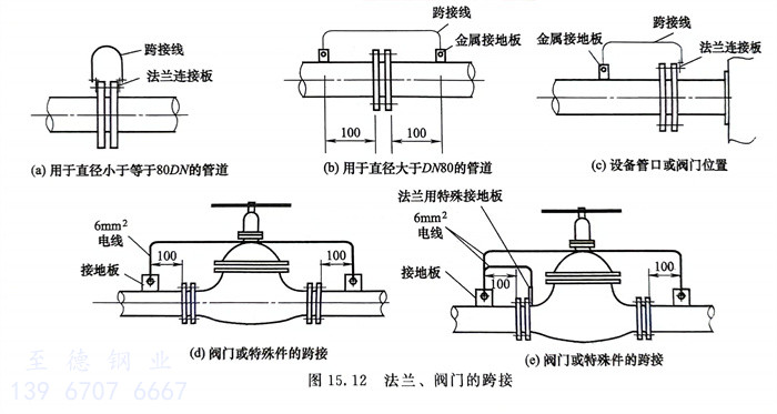 ⑤. 法蘭、閥(fa)門的跨接方式見圖15.12。