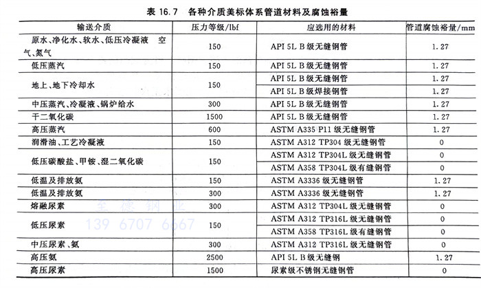 各種(zhong)介質管道材料及腐蝕裕(yu)量(liang)見表16.6、表16.7。