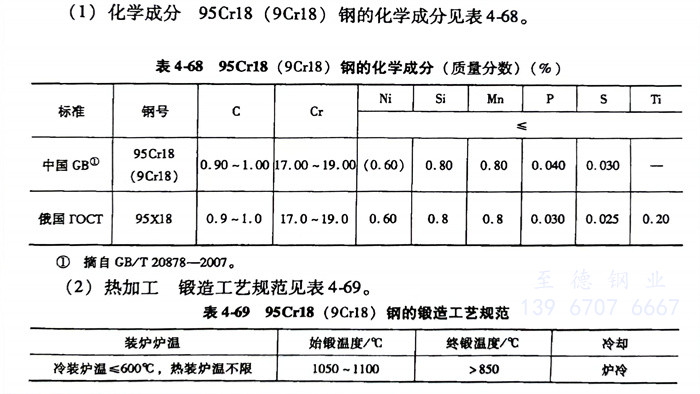 95Cr18 (9Cr18) 不銹(xiu)鋼的(de)化學成分見(jian)表4-68。