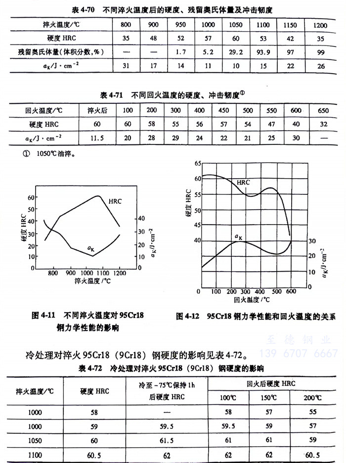 冷(leng)處理對淬火95Cr18 (9Cr18) 不銹鋼硬度(du)的(de)影響(xiang)見表4-72。