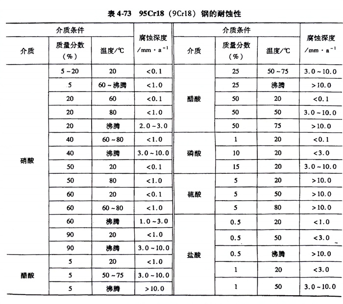 95Cr18 (9Cr18) 不銹鋼(gang)的耐(nai)蝕性見表4-73。