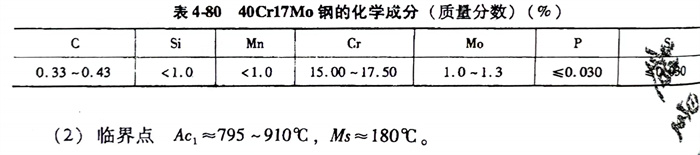 40Cr17Mo 不銹鋼(gang)的化學成分見表4-80。