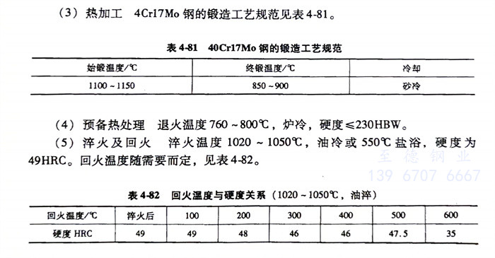 40Cr17Mo 不銹鋼(gang)的鍛造工藝規范見(jian)表4-81。