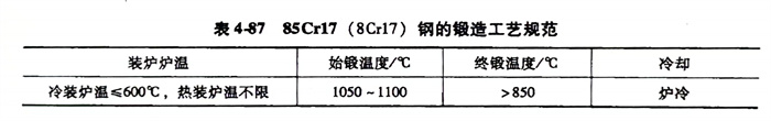 85Cr17(8Cr17)、S44003、SUS440B不銹鋼鍛造(zao)工藝規范見表4-87。