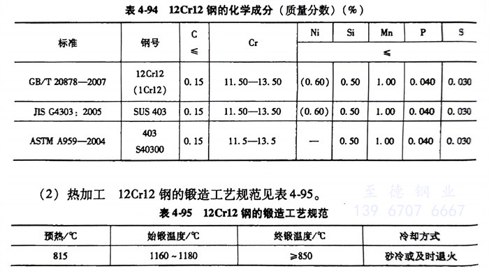 12Cr12(1Cr12)SUS403、S40300不銹鋼的化學成分見(jian)表4-94。