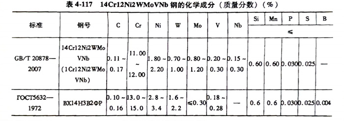 14Cr12Ni2WMoVNb(1Cr12Ni2WMoVNb)不銹鋼的化學成分(fen)見表4-117。