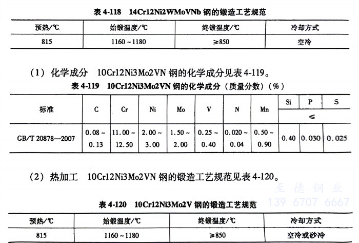 14Cr12Ni2WMoVNb(1Cr12Ni2WMoVNb)不銹鋼的鍛造工藝規范見表4-118。