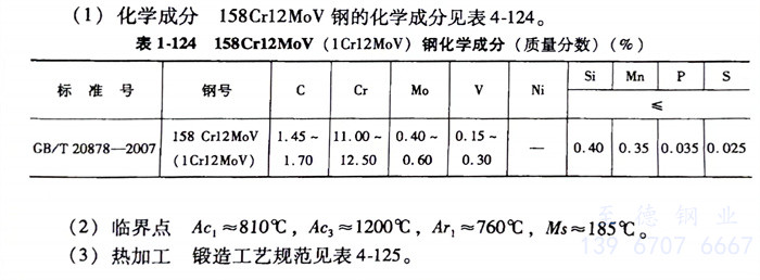 158Cr12MoV(1Cr12MoV)不銹(xiu)鋼的(de)化學成分(fen)見表4-124。