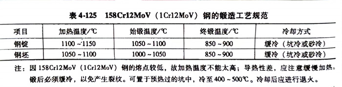 158Cr12MoV(1Cr12MoV)不銹鋼鍛造(zao)工藝規范見(jian)表4-125。