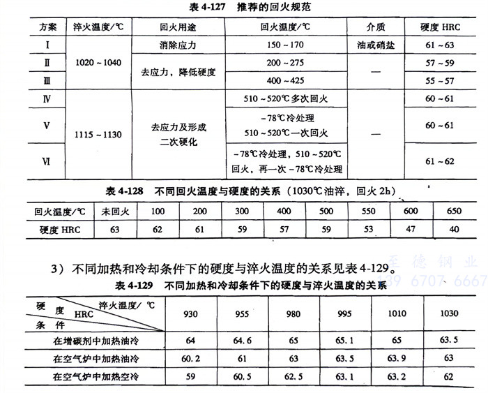 2. 回火(huo)(huo)規范見(jian)表(biao)4-127,不同回火(huo)(huo)溫度與硬度的關系見(jian)表(biao)4-128。