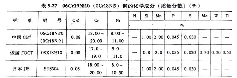 (1)化學成分: 06Cr19Ni10 、0Cr18Ni9、1.4301、S30408、304不銹(xiu)鋼的化學成分見表5-27。