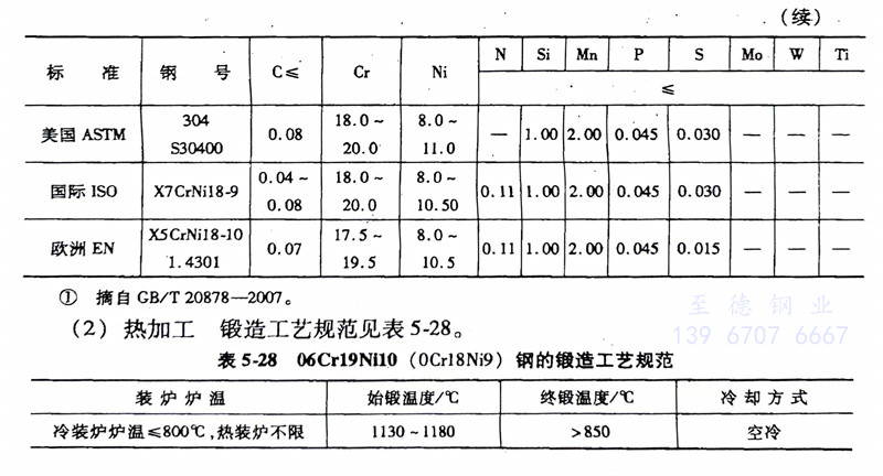 (2)熱(re)加(jia)工: 06Cr19Ni10 、0Cr18Ni9、1.4301、S30408、304不(bu)銹鋼鍛造工藝規范見表5-28。