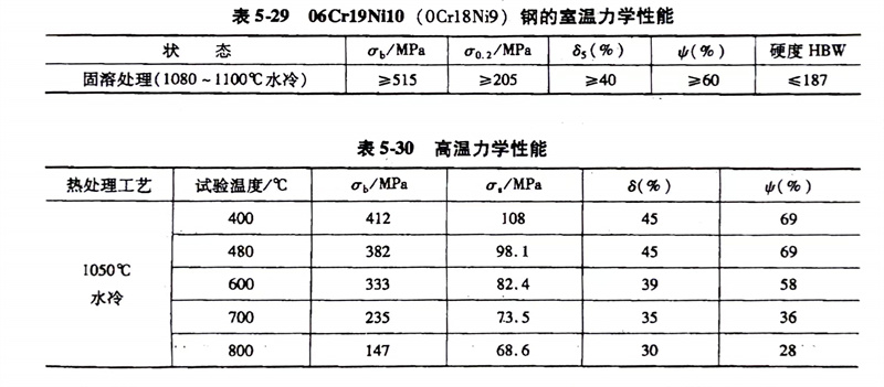(5)力學性能: 06Cr19Ni10 、0Cr18Ni9、1.4301、S30408、304不銹鋼的力學性能見表(biao)5-29和表(biao)5-30。