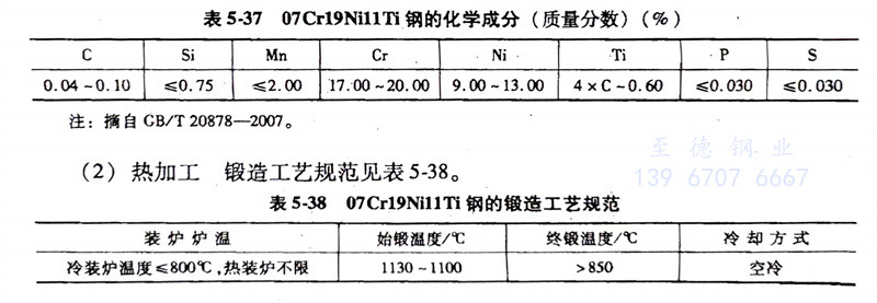 (2)熱加工: 07Cr19Ni11Ti(1Cr18Ni11Ti)321H不銹鋼(gang)的鍛造工藝規范見表5-38。