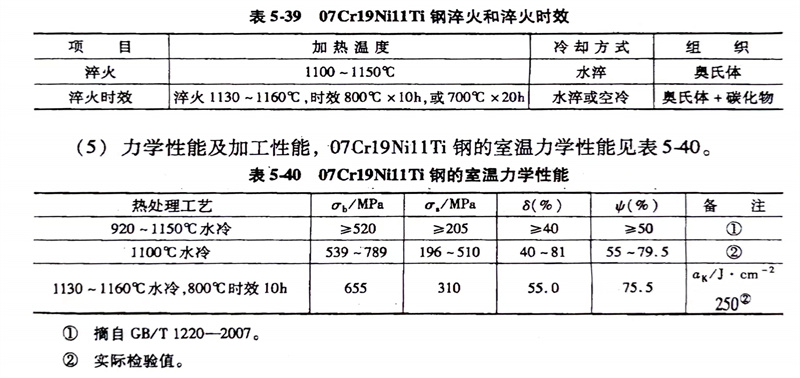 (5)力(li)學性(xing)能(neng)(neng)及加工性(xing)能(neng)(neng):07Cr19Ni11Ti不銹鋼的室溫力學性能見表5-40。