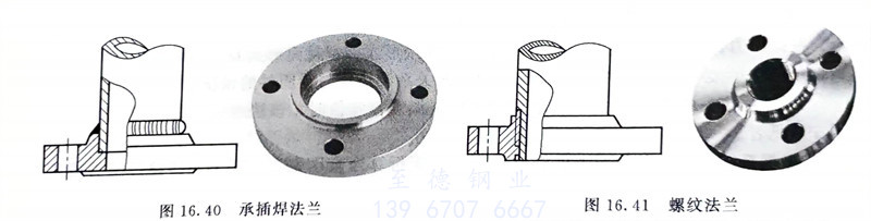 與帶頸平焊(han)法(fa)蘭(lan)(lan)相似,只(zhi)是將管子插入法(fa)蘭(lan)(lan)的(de)(de)承(cheng)插孔中(zhong)進行焊(han)接,一(yi)般只(zhi)在(zai)法(fa)蘭(lan)(lan)背(bei)面有(you)一(yi)條(tiao)(tiao)焊(han)縫,如圖(tu)16.40所示。常(chang)用(yong)于(yu)PN≤10.0MPa、DN≤40的(de)(de)管道中(zhong);美國法(fa)蘭(lan)(lan)標準ASMEB16.5不推薦承(cheng)插焊(han)法(fa)蘭(lan)(lan)用(yong)于(yu)具有(you)熱(re)循環(huan)或較大溫(wen)(wen)度梯(ti)度條(tiao)(tiao)件下(xia)的(de)(de)高溫(wen)(wen)(≥260℃)或低(di)溫(wen)(wen)(≤-45℃)的(de)(de)管道上(shang)。在(zai)可能產生裂(lie)隙腐蝕或嚴重侵(qin)蝕的(de)(de)管道上(shang)也不應(ying)使用(yong)這(zhe)種法(fa)蘭(lan)(lan)。